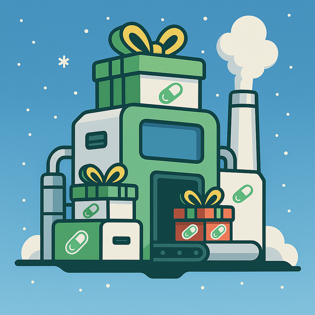 Deep in the digital permafrost of the North Pole, the Gift Factory operates autonomously. Gone are the elves of old; replaced by high-efficiency Micro-Bots that work tirelessly to convert chaotic market energy into structured rewards.
